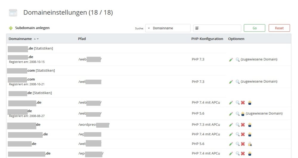 Welche (sub)domain nutzt welche PHP Konfiguration anzeigen lassen?